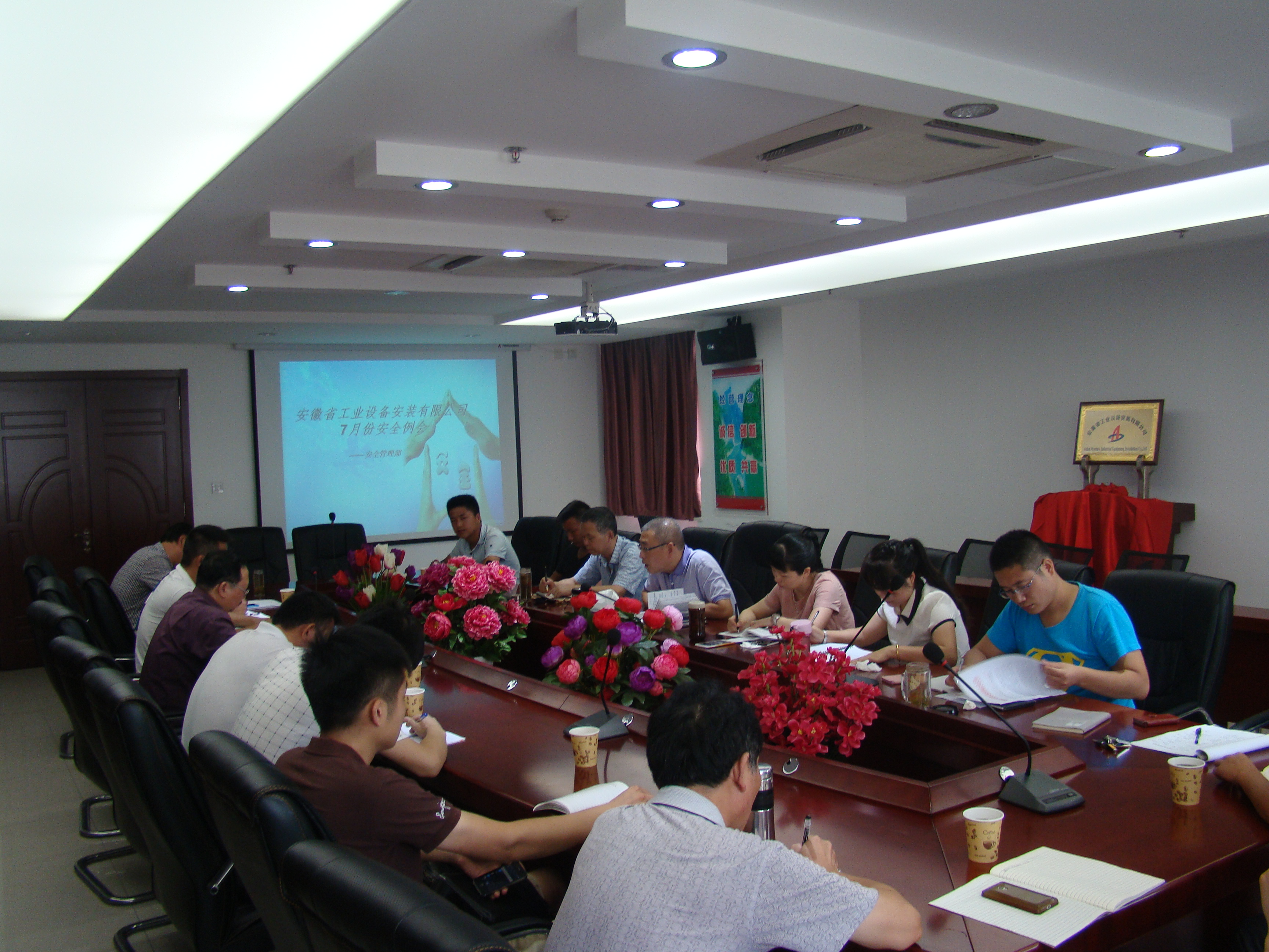 會(huì)議首先對公司7月份安全管理工作進(jìn)行了總結(jié),對8月份及三季度工作進(jìn)行了布置安排,通報(bào)了公司二季度安全生產(chǎn)檢查情況,要求各分公司加強(qiáng)安全管理,每月加大對在建項(xiàng)目的安全檢查頻次,做到檢查全覆蓋,對檢查不合格的項(xiàng)目給予通報(bào)批評(píng);其次,對新開工程的安全報(bào)監(jiān)流程、所需資料及注意事項(xiàng)做了具體要求;最后,參會(huì)全體人員對集團(tuán)公司安全標(biāo)準(zhǔn)化管理手冊進(jìn)行了學(xué)習(xí),并要求各單位會(huì)后對手冊內(nèi)容積極宣貫、推廣。
