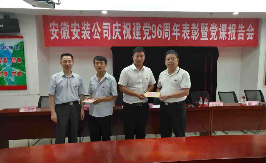 6月29日下午,安徽安裝公司召開慶祝建黨96周年表彰大會暨“七一”專題黨課活動,公司領(lǐng)導(dǎo)班子、在肥在崗黨員、入黨積極分子以及受表彰的先進(jìn)集體、先進(jìn)個(gè)人等60余人參加了會議。會議由公司董事長、總經(jīng)理、黨委副書記王軍邦主持。