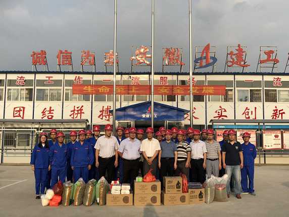 牛曙東一行一到工地就深入施工現(xiàn)場察看項目安全防護設施、文明施工、工程進展情況,還仔細詢問員工的工作、生活和項目黨建工作等。為奮戰(zhàn)在高溫中的一線職工送去了礦泉水、綠豆、毛巾等防暑藥品等慰問品,關切職工工作和身體狀況,深入到職工宿舍、食堂實地查看職工居住和生活條件。詳細了解高溫期間工作安排情況,并向堅守在高溫一線的職工表示親切慰問和感謝。牛曙東指出,連續(xù)高溫天氣,一線職工始終堅守在崗位,落實高溫天氣作業(yè)安全防范措施,做好當前防暑降溫工作,防止職工中暑,確保人身安全。