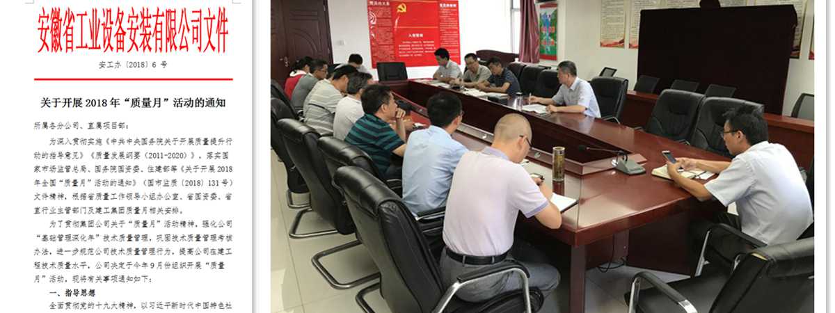 為了貫徹落實2018年“質量月”活動精神,強化“基礎管理深化年”技術質量管理,進一步規范技術質量管理行為,提升工程技術質量管理水平,安徽安裝公司積極響應、多措并舉,扎實開展“質量月”活動。