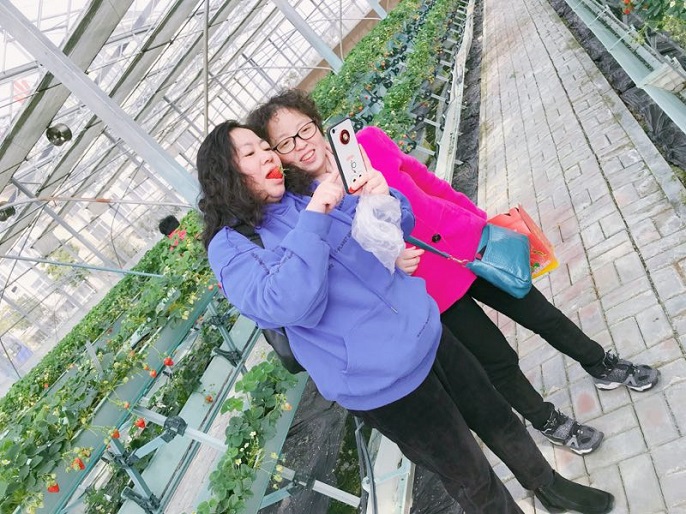 沐浴著清晨的第一縷陽光大家乘車出發,一路上互相交流,歡聲笑語。 三月微風暖,九州春意濃,草莓大棚里一片生機勃勃,翠綠的葉子、鮮紅的果實、芬芳的果香都讓人感到心情格外舒暢。她們小心翼翼地行走在草莓土壟之間,尋找自己的“戰地”,一邊品嘗,一邊采摘,感受著自己動手的樂趣與收獲的喜悅。趁著美景,一起合影或是自拍,不時傳來歡快的笑聲。一個多小時后,每個人都有了豐碩的“戰果”,臉上都洋溢著燦爛的笑容,在這里留下了歡樂的記憶。