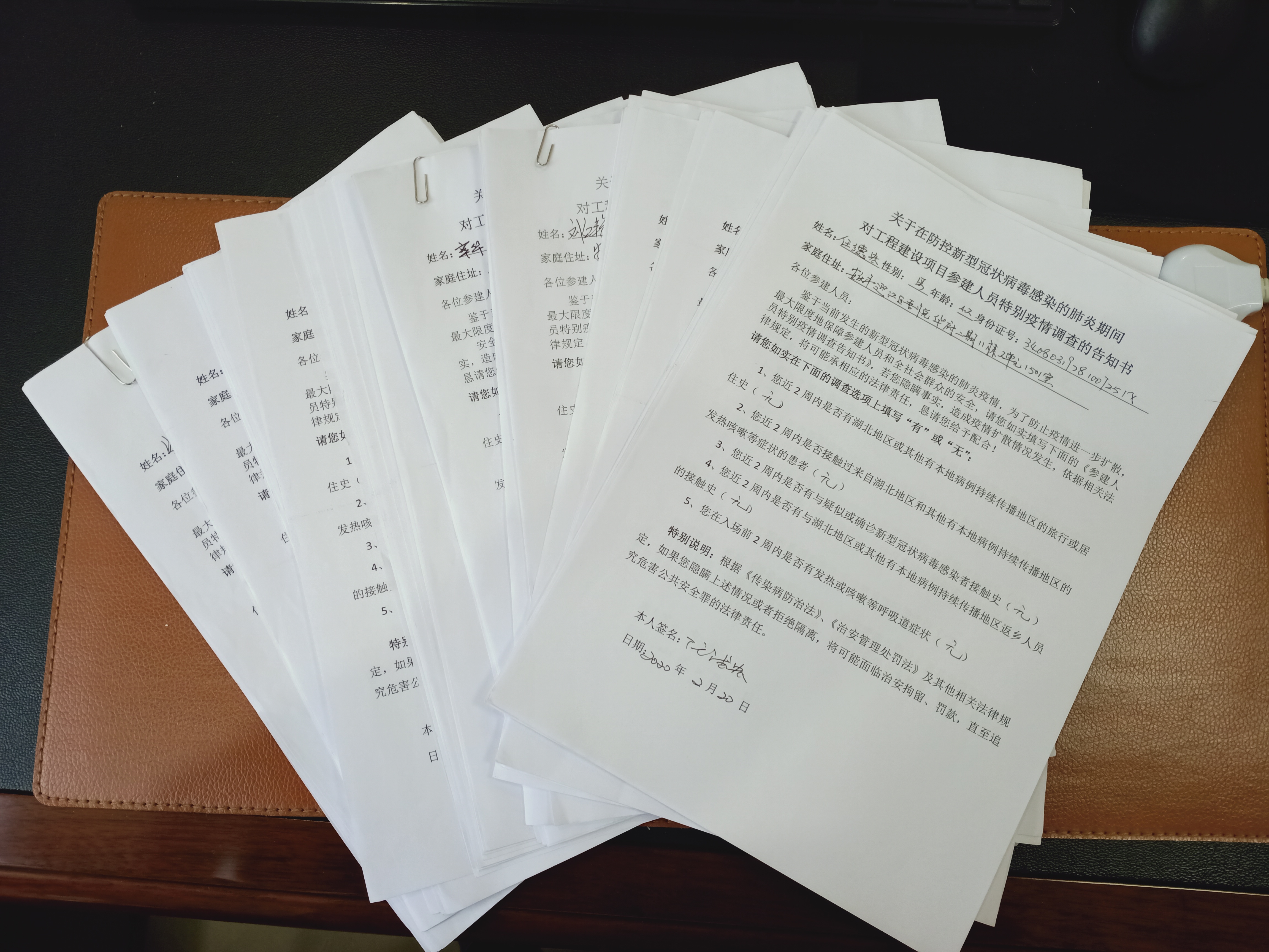 為了解疫情防控期間員工真實(shí)出行和健康情況,項(xiàng)目部組織員工通過運(yùn)營(yíng)商“漫游地查詢”公益服務(wù)和每日健康打卡獲取最近30日出行軌跡和每日健康狀況,要求員工簽署疫情防控告知書。確保無(wú)死角、全覆蓋,嚴(yán)把人員輸入關(guān),從源頭上消滅安全隱患因素。