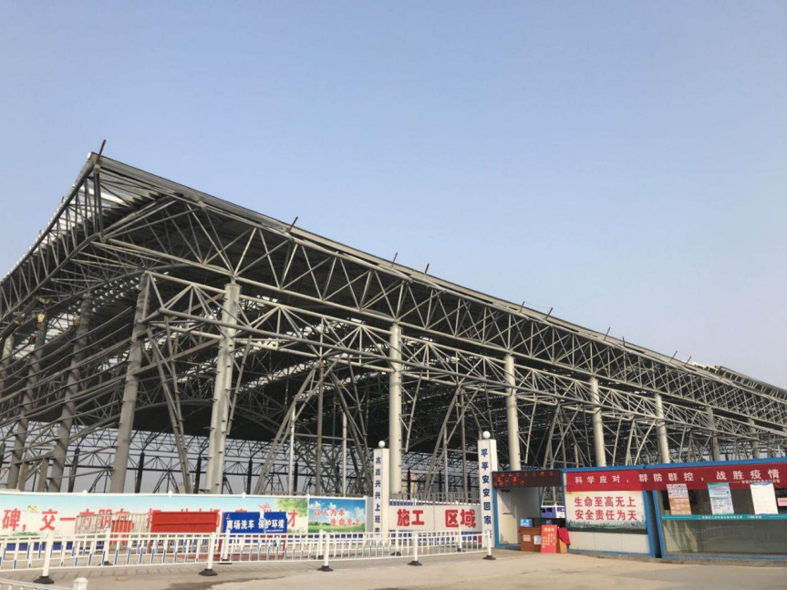 安徽省·水利部淮河水利委員會(huì)水利科學(xué)研究院淮河試驗(yàn)研究中心(水工河工模型試驗(yàn)廳)一期工程,水工河工模型試驗(yàn)廳主要進(jìn)行各種水流模型試驗(yàn),通過整體水工模型試驗(yàn),率定泄洪閘、排沙孔泄流能力、描述進(jìn)出口水流流態(tài),對護(hù)岸范圍提出合理的防護(hù)方式,優(yōu)化泄洪消能建筑物布置和體型等發(fā)揮巨大作用。項(xiàng)目主要施工內(nèi)容為新建水工河工模型試驗(yàn)一廳鋼結(jié)構(gòu)及附屬土建工程,建筑面積約20000㎡,基礎(chǔ)形式為長螺旋鉆孔灌注樁,結(jié)構(gòu)形式為排架柱(圓鋼管)+三肢管桁架結(jié)構(gòu),頂部成弧形空間結(jié)構(gòu)形式,桁架跨度約100m,跨中為四聯(lián)拱(三角桁架),安裝高度最高24m,鋼材用量1800多噸,為目前安徽省建設(shè)第二大跨度的鋼結(jié)構(gòu)工程。目前,該項(xiàng)目整體鋼結(jié)構(gòu)建設(shè)已基本完成,主要施工內(nèi)容是水電安裝、裝飾、幕墻各個(gè)分項(xiàng)建設(shè)。
