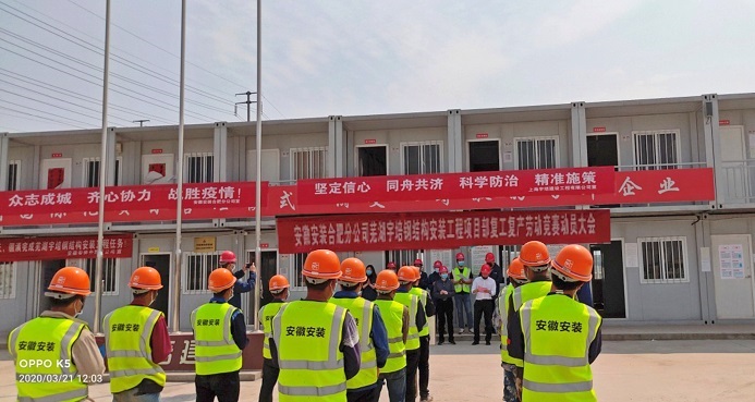 為確保年度各項目目標任務順利完成,貫徹落實集團和安裝公司兩級職代會及疫情防控、復工復產工作推進會精神,3月21日上午,安徽安裝召開蕪湖宇培裝配生產基地項目“大干90天”勞動競賽動員會。公司黨委書記、董事長胡六中,紀委書記、工會主席李寬旭,合肥分公司領導班子成員、項目管理人員和施工班組參加了競賽動員會。