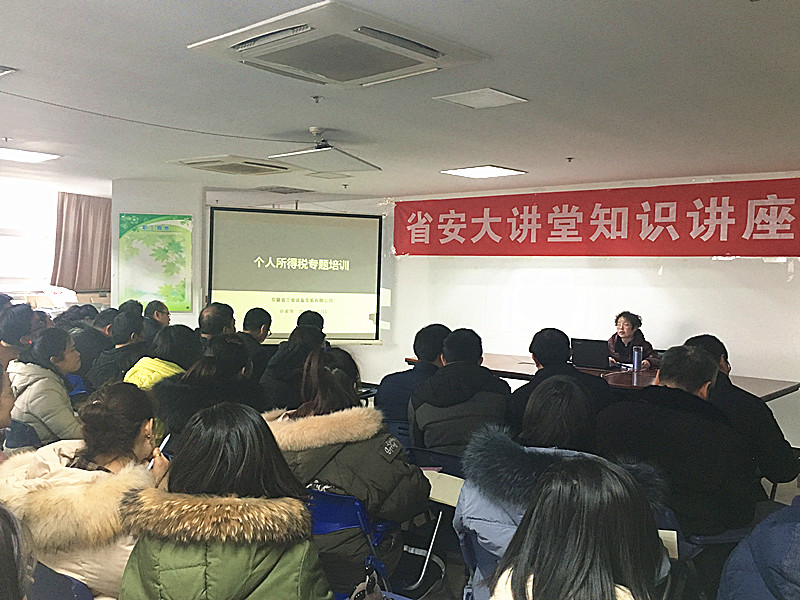 2月21日下午“省安大講堂”—個人所得稅專題培訓(xùn)在職工之家開課。本次培訓(xùn)由財務(wù)部經(jīng)理許素寒授課,公司機(jī)關(guān)、分公司相關(guān)人員共80余人參加。