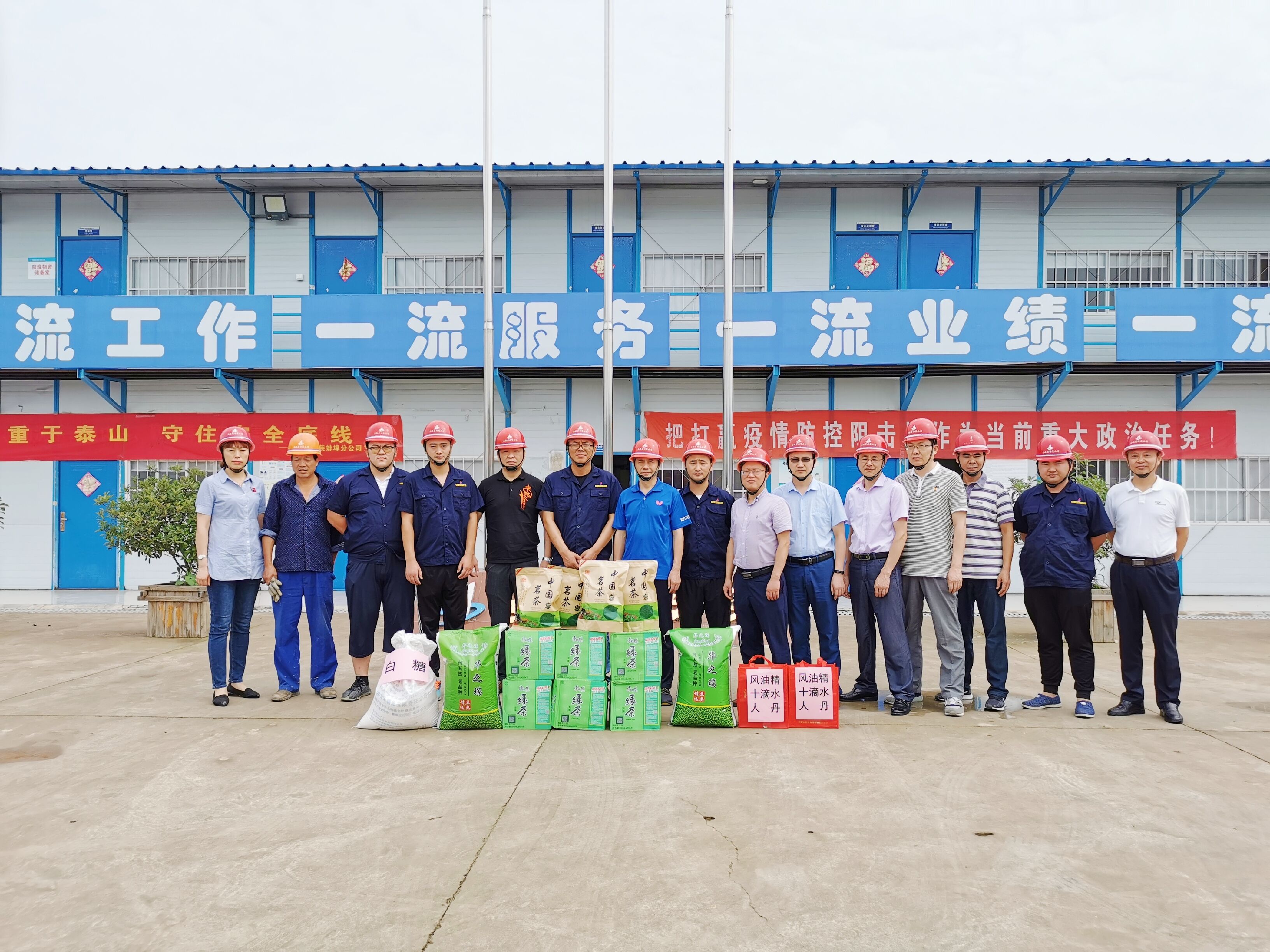 7月15日上午,公司領導深入蚌埠分公司淮河水科院項目部施工現場,為一線員工送去綠豆、白糖、茶葉、藥品等夏季防暑降溫物品。查看了施工現場管理、辦公生活環境,悉心詢問大家的工作生活情況,對項目部職工不懼高溫、堅守一線的奉獻精神予以充分肯定。要求項目部要切實抓好收尾工程的安全、質量、結算工作,尤其要抓好項目的創優創杯工作。