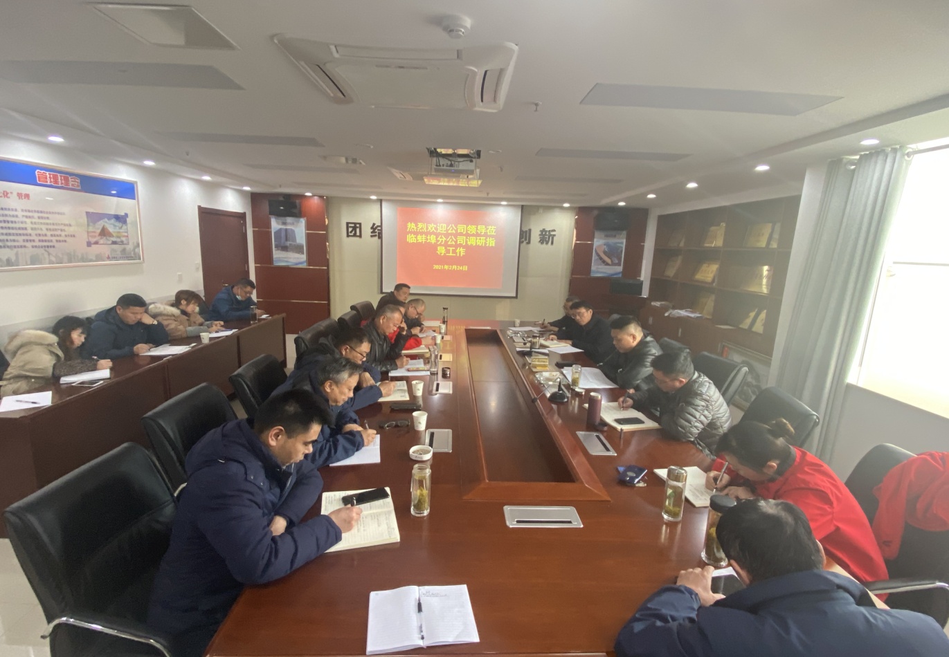 2月24日下午,公司副總經理王軍深入蚌埠分公司調研指導工作。公司招標辦公室經理李紹林、物資管理部經理卜英朝、分公司班子成員、部門負責人、項目經理及相關部門人員參加會議。