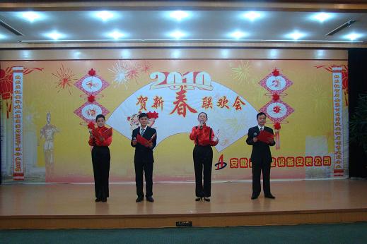 公司王軍邦總經理代表公司黨政領導班子致新年賀詞,感謝一年來上級領導的大力支持和關懷,感謝全體員工的辛勤付出和熱愛。伴隨著優美的旋律,聯歡會在舞蹈《好運來》中正式拉開序幕,火紅的扇子,舞出了我們共同的期盼;詩朗誦《承諾》,聲情并茂、鏗鏘有力的述說了省安三年來發生的巨大變化和取得的輝煌成績,博得了在場觀眾的陣陣掌聲。安慶分公司的戲劇小品《比翼雙飛》與合肥項目部的男聲獨唱《恭喜發財》同獲一等獎,蚌埠分公司的說唱《三載巨變展新貌》和經理辦的小品《昨天今天 明天》同獲二等獎。