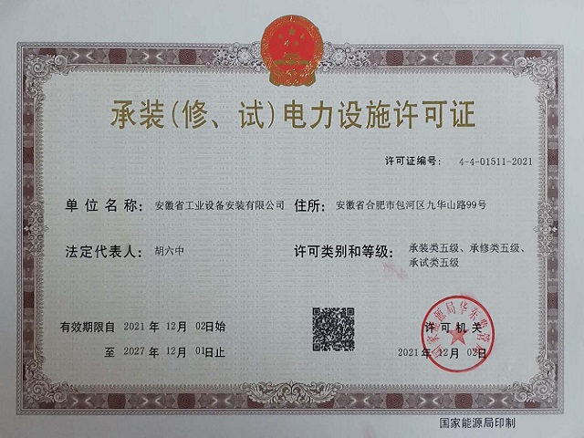 承裝(修、試)電力設施許可證