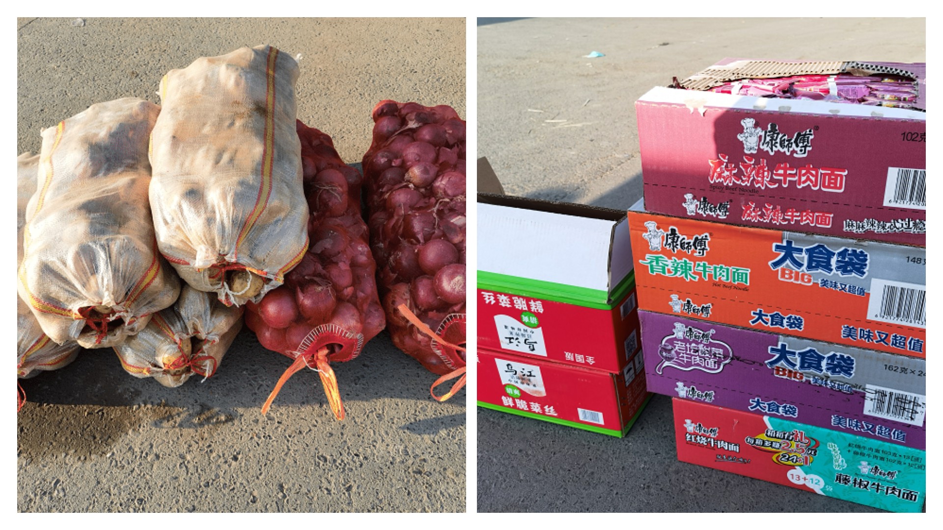 疫情反彈期間天氣炎熱,生活物資匱乏,土豆、洋蔥、方便面、榨菜等易存放食物成為項目部唯一“菜單”