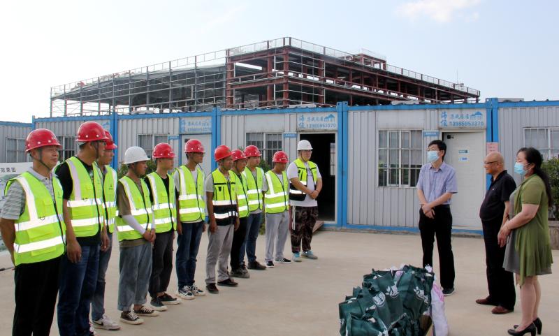 楊金城指出,蚌埠市總工會此次“送清涼”活動,既是關心一線生產工人、為職工服務的重點工作,也是“學黨史、辦實事”的一項具體措施,安徽安裝公司在臨港智能制造產業園項目施工中顧全大局,擔當作為,不僅鍛造了一支高素質的施工隊伍,更為蚌埠市經濟發展做出了較大貢獻,希望項目部全體職工繼續發揚吃苦耐勞精神,做好疫情防控,將防暑降溫、安全生產等各項舉措落實到位,為職工提供一個舒適安全的工作環境。