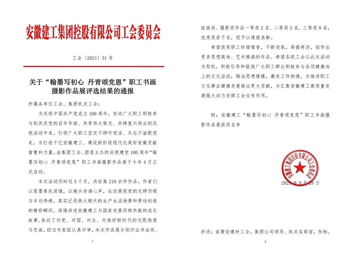 安徽安裝公司在集團(tuán)“翰墨寫初心 丹青頌黨恩”職工書畫攝影作品展中喜獲佳績(jī)