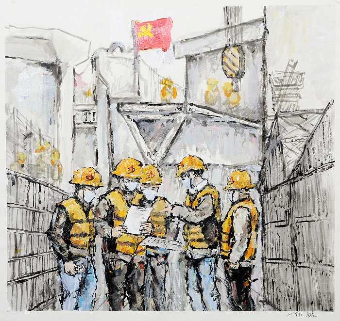 繪畫類:馬金鑫——油畫《支部建在項(xiàng)目上》