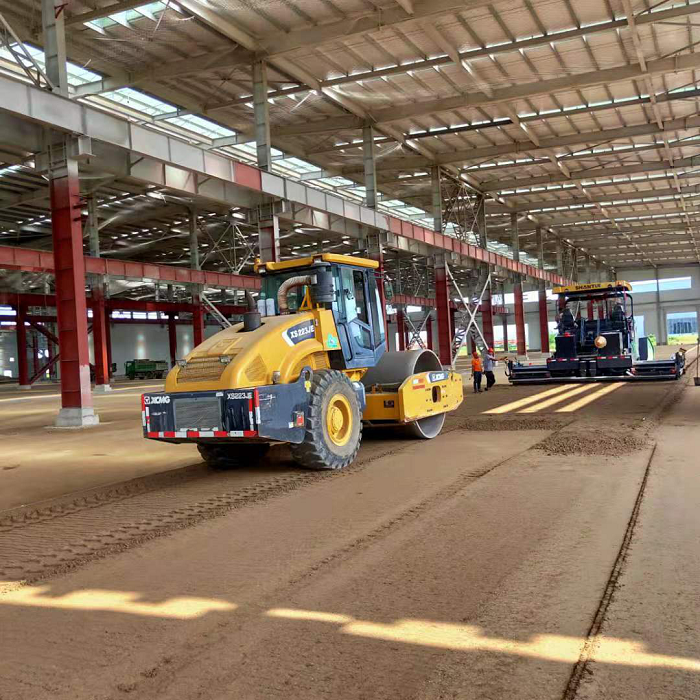 競賽期間,項目部成員堅定信心,團結一致,積極擔當作為,把競賽重要節點工作放在首位,形成各司其職,環環相扣的工作態勢。6個參建班組齊心協力,不畏艱難,按白班和夜班“白加黑”“五加二”,加班加點,吃住在施工現場。項目部通過增加資源調配,強化施工組織,加強施工保障,統籌安排,在其他分部分項工程平行推進的前提下,競賽共完成產值1400余萬元,累計完成地坪水穩攤鋪、碾壓24600余噸,鋼筋加工綁扎224噸,金剛砂混凝土澆筑6500余方,項目控制性工程船舶車間31464平米地坪施工比計劃工期提前26天(計劃工期60天),比競賽目標工期提前7天,提前實現了節點控制目標,取得階段性突破。