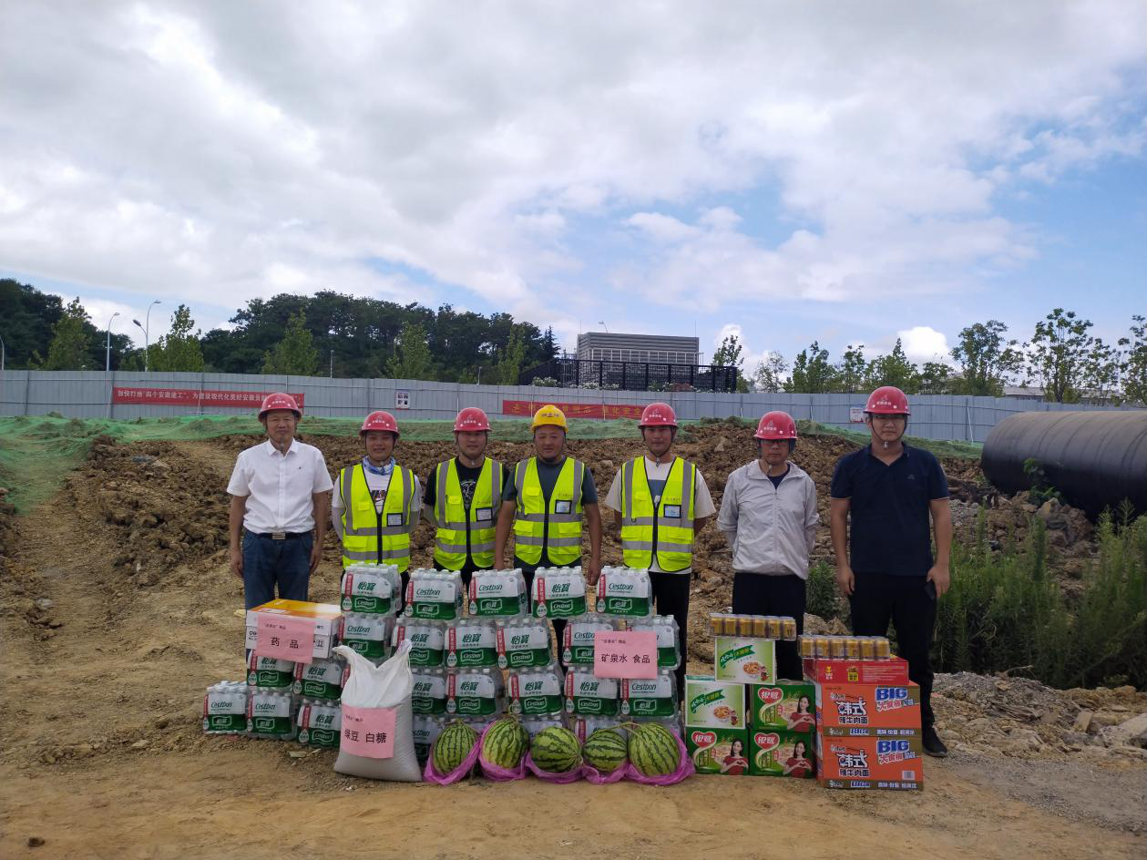 每到一個項目,分公司領導班子一行首先慰問堅守在崗位的一線職工,親手為他們送去綠豆、白糖、飲料、防暑降溫藥品等慰問品,絲絲清涼,沁入心田!分公司領導在慰問時,還不斷提醒一線職工同志們要注意個人的身體狀況,做好高溫下的自我防護;同時還反復叮囑項目部管理人員,現場高溫作業時,每位職工都要隨時配帶人丹、十滴水等防暑藥品,以防人員中暑;項目部要結合工程實際,適時調整戶外作業時間,避開高溫時間段作業;同時項目部還要保障好施工作業人員的休息時間、休息條件和飲食衛生,切實做好防暑降溫工作。