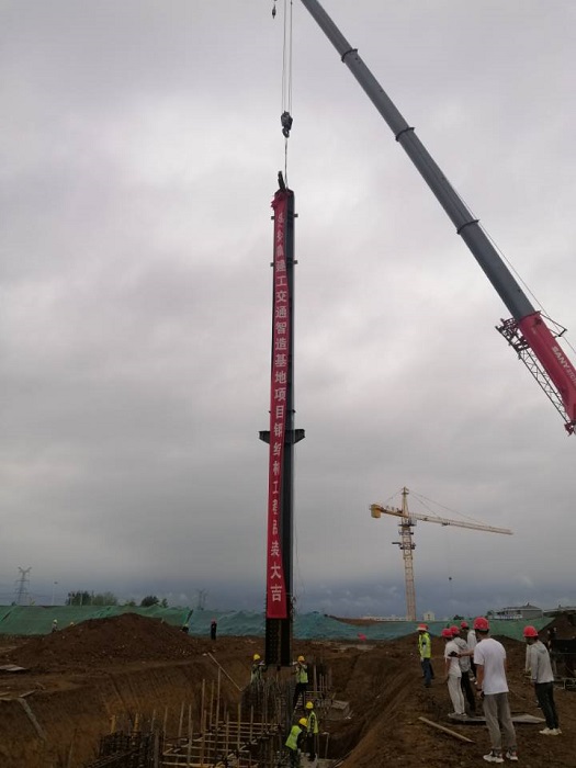2022年7月26日上午8:18分,在項目建設(shè)單位、監(jiān)理單位、總包單位等領(lǐng)導(dǎo)的共同見證下,安徽建工交通智造基地項目鋼結(jié)構(gòu)工程迎來了隆重的鋼結(jié)構(gòu)首吊儀式。只見首根長約21.2米、重約11.6噸的鋼柱緩緩升起、穩(wěn)穩(wěn)落地,精準(zhǔn)定位在安裝位置上,這標(biāo)志著該項目正式進(jìn)入鋼結(jié)構(gòu)主體安裝階段。