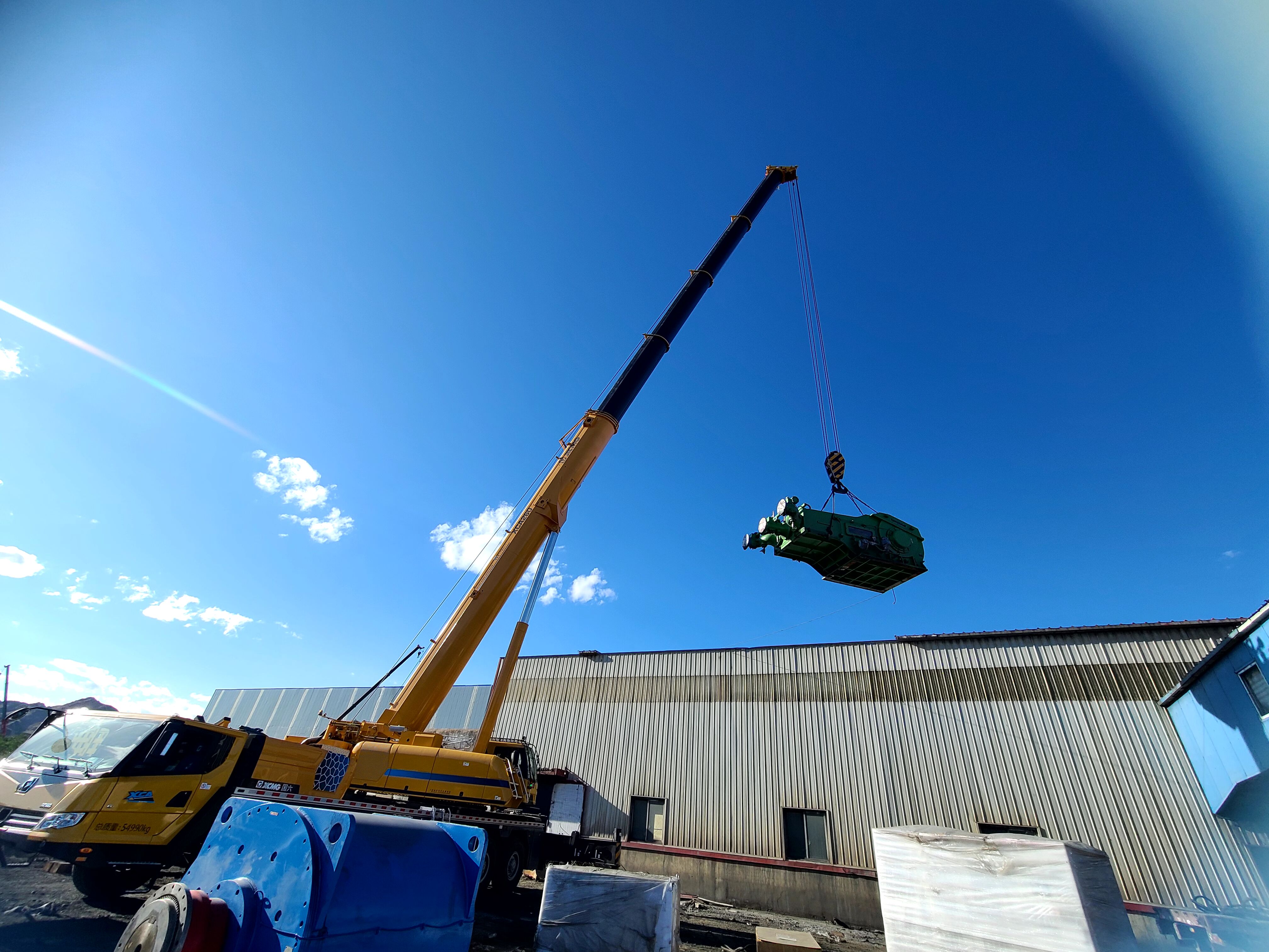 下午16點30分,吊裝準備工作已切就緒后,隨著正式吊裝令的下達,在施工作業人員以及吊機嫻熟的配合下,200m3隔膜泵主體順利完成吊裝。自此,內蒙古滕增礦150萬噸選廠設備安裝工程項目全面進入收尾階段。