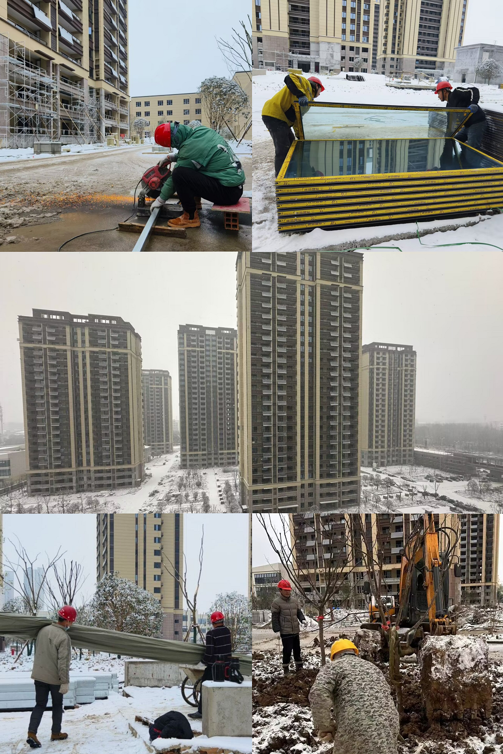 在安徽理工大學(合肥高等研究院)維修改造項目(二期)施工現場,肆虐的雪花紛紛揚揚飄落,凜冽的寒風一陣陣刮過。為確保項目生產正常進行,項目部全體人員不畏嚴寒,齊心協力破雪除冰,及時消除安全隱患;同時,項目部還加強現場管理、強化生產安全防護、嚴密監控天氣變化,為確保工程進度和質量有序推進保駕護航。