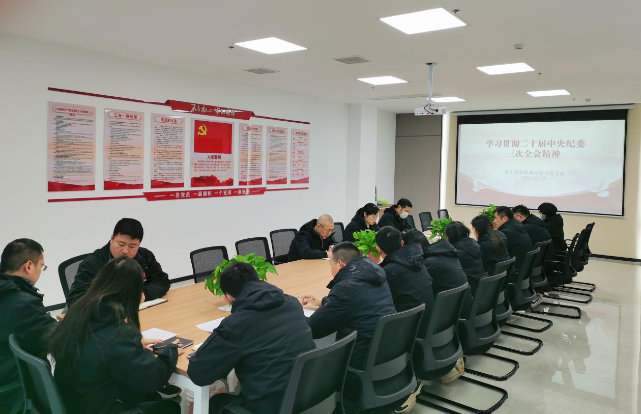 1月18日上午,建工安裝滁州分公司黨支部召開(kāi)理論學(xué)習(xí)會(huì),專(zhuān)題學(xué)習(xí)第二十屆中央紀(jì)委三次全會(huì)精神。分公司在滁領(lǐng)導(dǎo)班子成員、黨員、項(xiàng)目經(jīng)理、各部門(mén)負(fù)責(zé)人等參加會(huì)議。會(huì)議由分公司黨支部書(shū)記、副經(jīng)理程茂麗主持。
