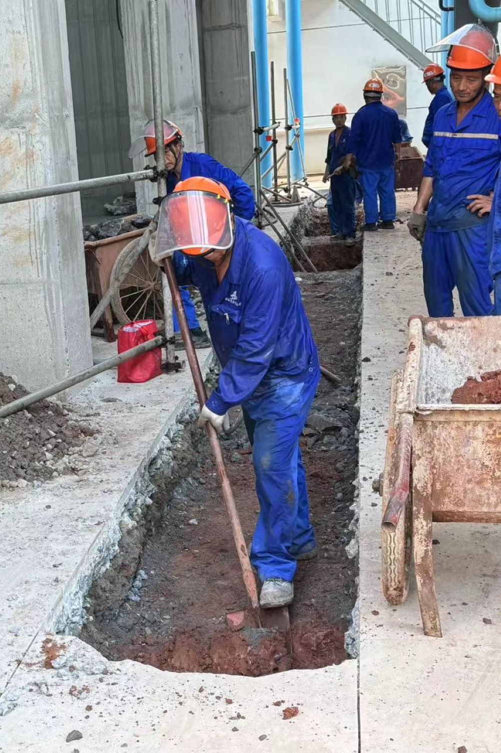 安慶石化熱電部干灰區域增設車輛清洗設施及排水溝改造項目于今年7月底開工。項目現場施工工人熱情高漲,頂著高溫酷暑堅守一線,目前已完成排水溝開挖工作。