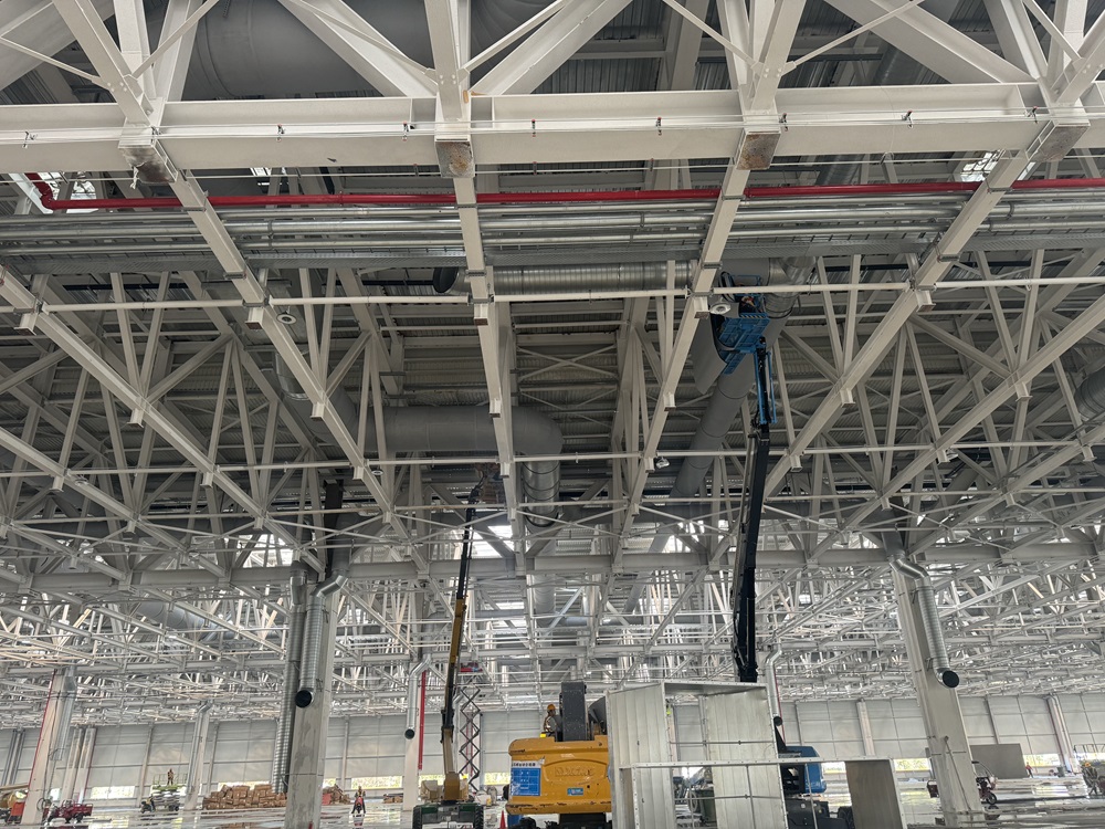 目前,“完成首開區(qū)”節(jié)點目標已完成,總產值完成7000萬。本周現(xiàn)場施工人數(shù)約450人,升降車、登高車等機械約180臺。電氣班組完成橋架安裝12000米,燈具安裝3000盞,電線安裝70000米,電氣配管安裝15000米;給排水班組完成管道安裝21000米;暖通班組完成風管制作與安裝45000平方米;消防班組完成消防管道安裝8500米。