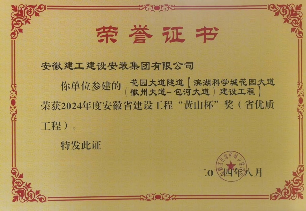 近日,安徽省住房和城鄉建設廳公布了2024年度安徽省建設工程“黃山杯”獲獎項目名單,建工安裝合肥分公司濱湖科學城花園大道(徽州大道-包河大道)建設工程項目榮獲“黃山杯”獎項,這是本項目繼榮獲華東優質安裝工程獎之后的又一重量級獎項。
