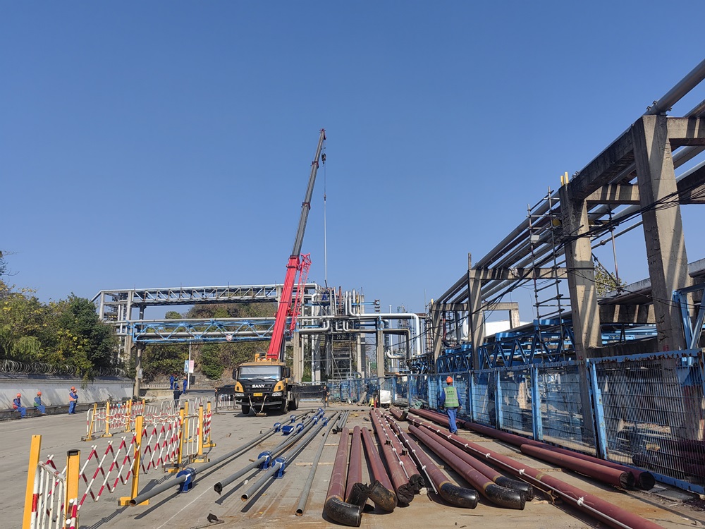 目前煉油二部RLG區域完成配管,敷設50%電纜,重油加氫區域進度完成70%,柴油加氫區域配管完成電纜敷設,儀表安裝;化工一部凈化區域進度完成50%。進入四季度以來,該項目緊盯節點目標,精心組織協調,通過班前講話、現場“碰頭會”等多種形式完善質量卡控措施,全力推進各項施工環節穩步開展。