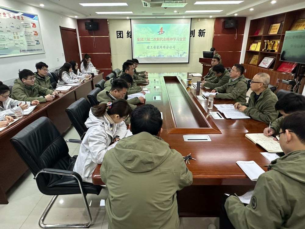 2月 13 日,建工安裝蚌埠分公司召開專題學(xué)習(xí)會,全面深入學(xué)習(xí)宣貫安徽建工集團(tuán)三屆二次職代會會議精神。分公司班子成員、機(jī)關(guān)全體員工以及在蚌項目管理人員參會。會議由分公司黨支部書記、經(jīng)理趙銘亮主持。